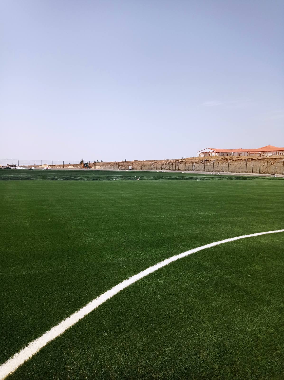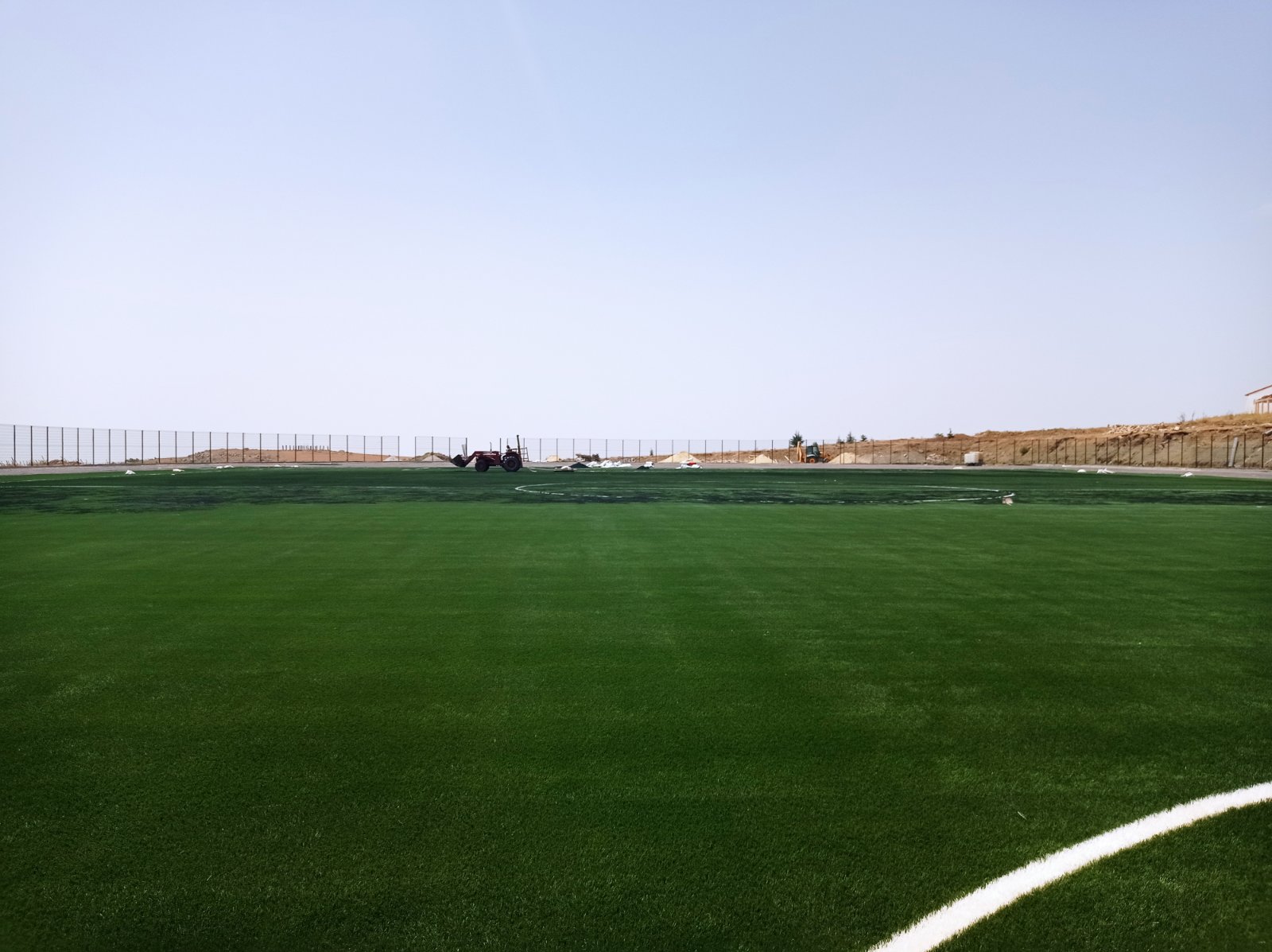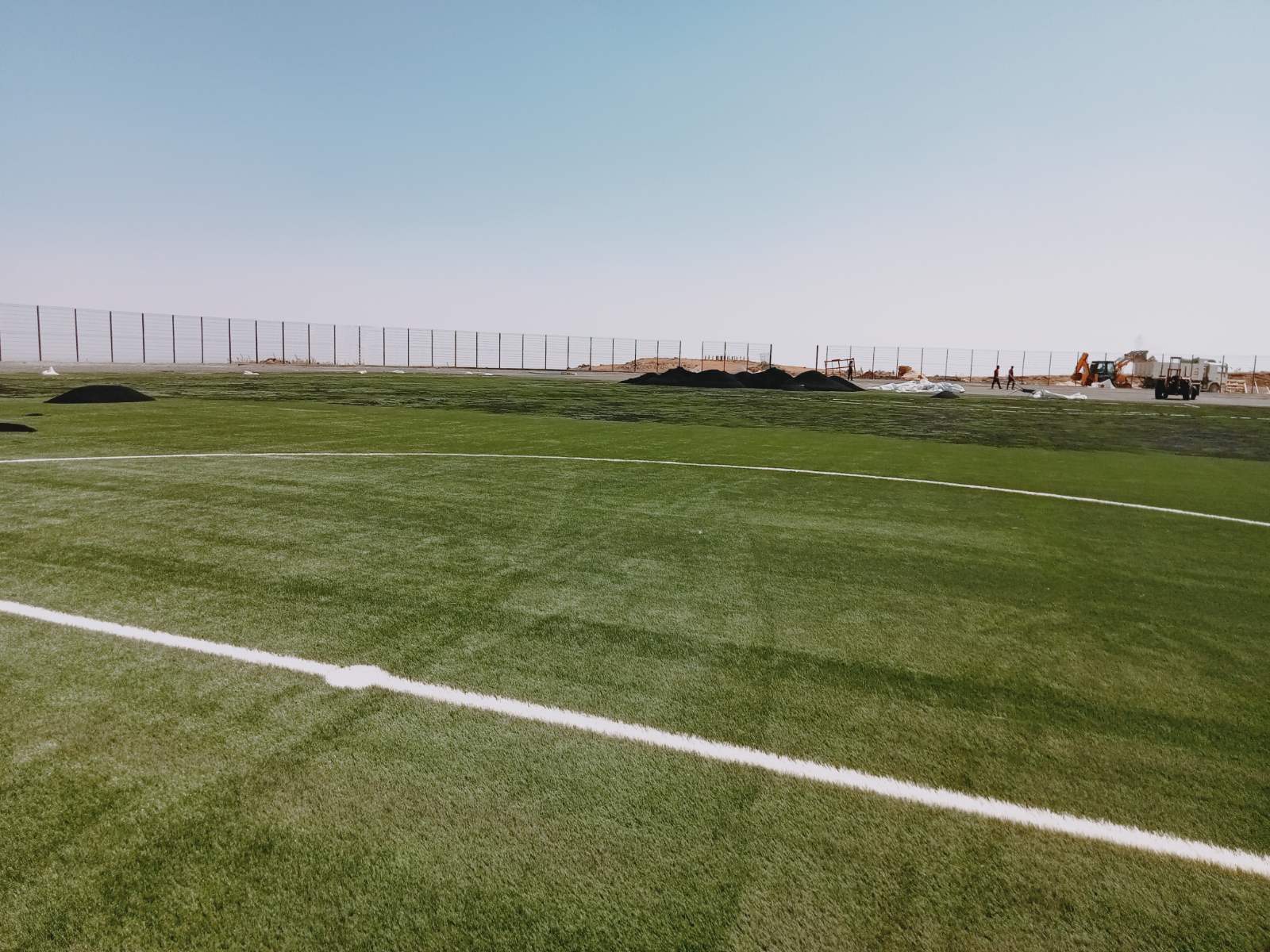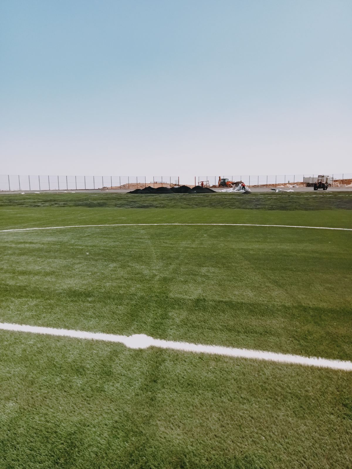Encours de réalisation des travaux de couverture du stade communal megress à Ain abassa en gazon synthétique prestige XM6 approprié aux conditions climatique.