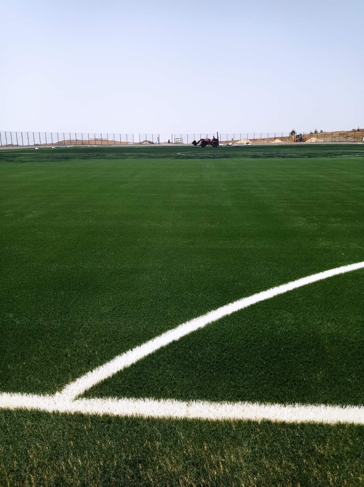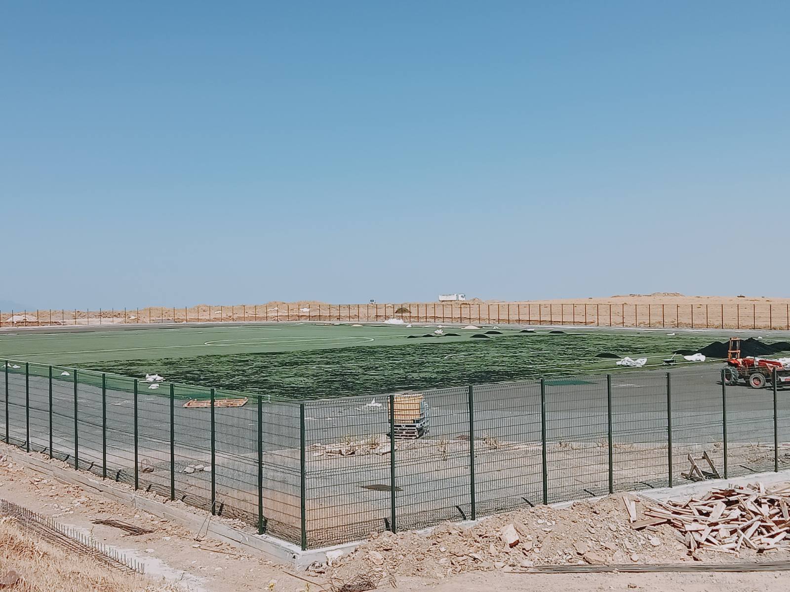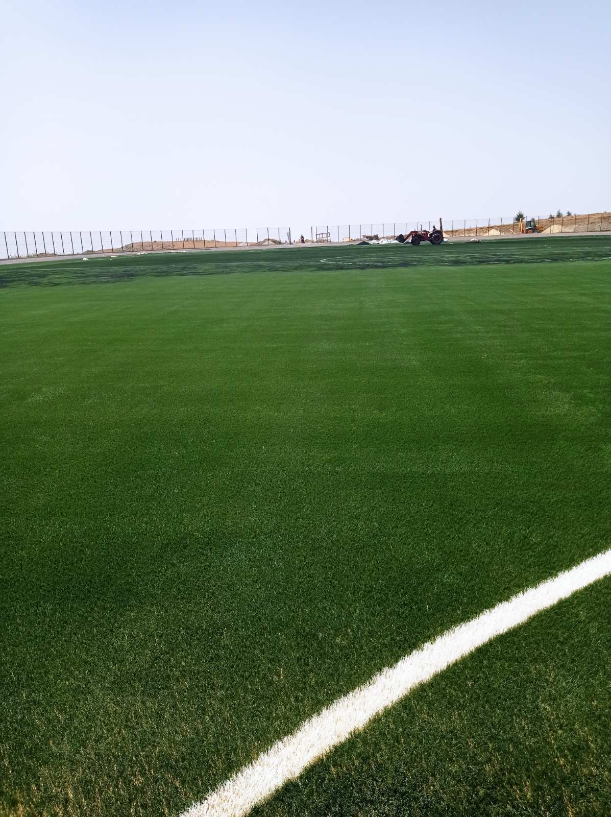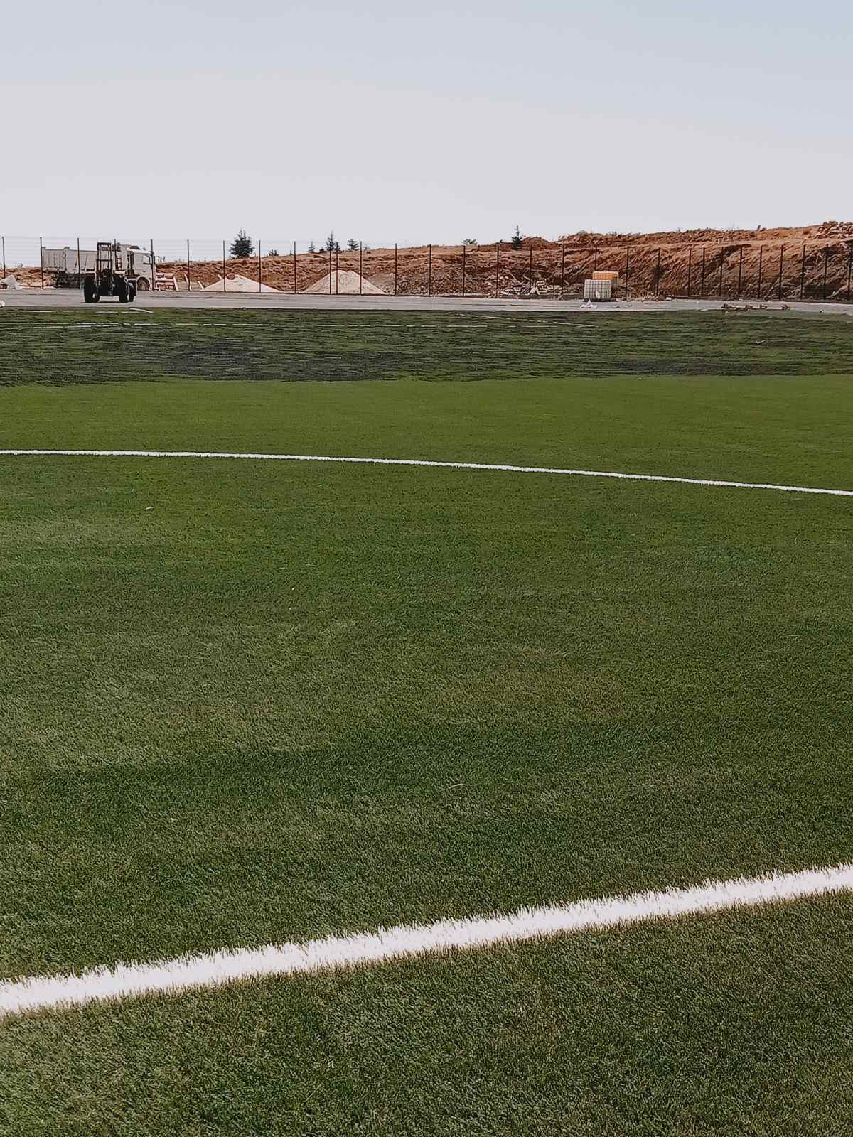 Encours de réalisation des travaux de couverture du stade communal megress à Ain abassa en gazon synthétique prestige XM6 approprié aux conditions climatique.